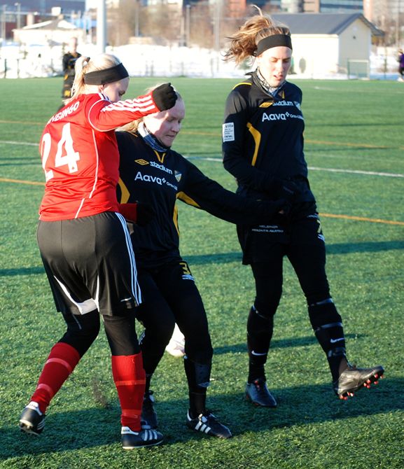 FC Honka päätti harjoituskautensa Turun Kupittaalla 0-2 voitolla Naisten Ykkösessä pelaavasta TuWesta. Aurinkoisessa säässä pelatussa ajoittain hieman hidastempoisessessa ottelussa Hongan maaleista vastasivat Anna Auvinen ja Nina Lindström. Hongalla oli paikkoja useampaankin osumaan, mutta heikko viimeistely ja kotijoukkueen maalivahdin hyvät otteet pitivät ottelun vähämaalisena loppuun asti. Kotijoukkue oli parhaimmillaan vastahyökkäyksissä, mutta erityisen vaarallisille paikoille turkulaiset eivät ottelussa päässeet.