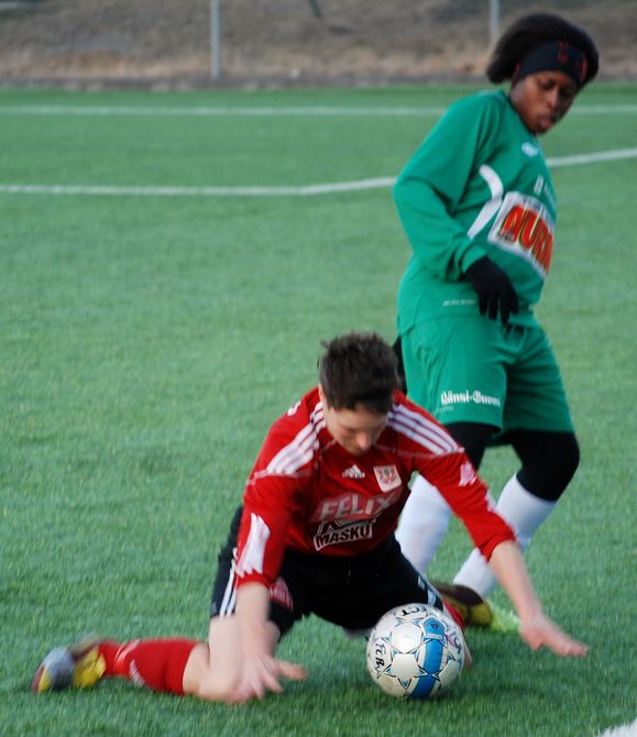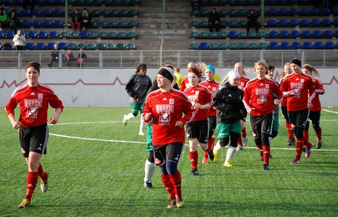 Vajaan puolen tunnin pelin jälkeen Veronica Karlsson (26') laukoi kauden avausmaalin Matilda Halmin syötöstä. Maalitolpat saivat ensimmäisen puoliskon aikana kyytiä puolelta jos toiseltakin, mutta Veronican maali jäi ainoaksi onnistumiseksi.