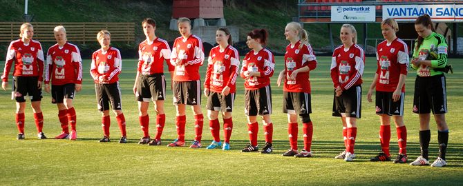 VJS: Henrietta Helanne -> 60' Hanna Fagerholm, Sanni Franssi, Mimmi Nurmela, Ella Hopponen, Annica Karlsson -> 46' Netta Koso, Vilma Väisänen, Tia Painilainen, Nelli Nevalampi, Tiia Peltonen, Sofia Litendahl -> 46' Selina Mustajoki , Velma Oikarinen, (Santra Posio, Riina Koistinen, Rosanna Pyykkinen, Eveliina Liljasto).