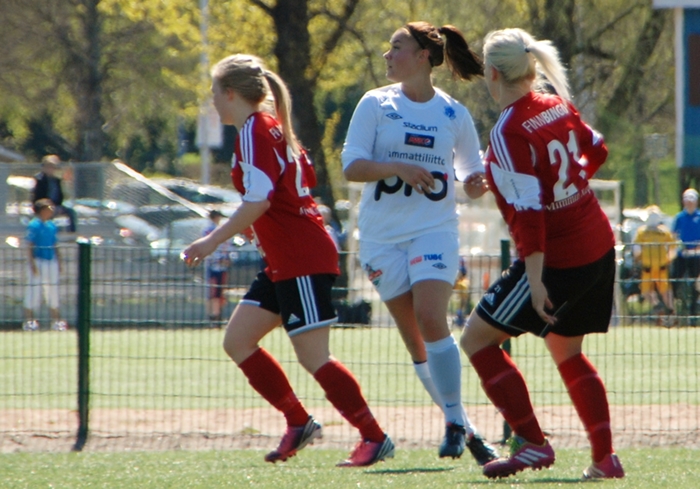 FC Viikingit: Tove Salokivi, Salla Jyrkäs -> 36' Mira Lönroth, Tuuli Lindholm, Heini Metsola, Pia Riima -> 86' Saara Heikkilä, Vilma Rosenström, Lotta Peitsi, Jamila Heroum -> 75' Janette Rautakoski, Sini Ihamäki, Hanna-Leena Kokkonen -> 93' Kajsa Lassila, Saida Saarinen, (Mia Lyytinen, Pinja Salminen).
