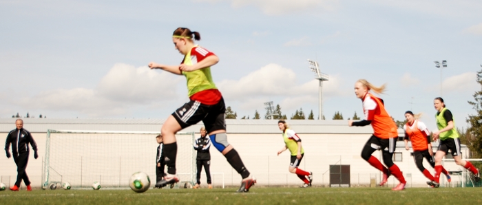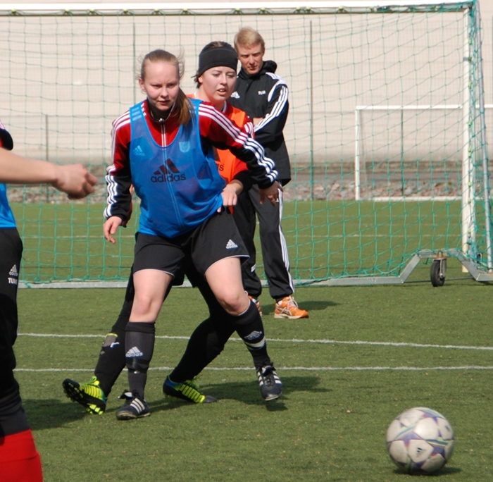 Tilanne saatiin purettua kunnialla ja peli jatkui tasaisemmissa merkeissä aaltoillen päädystä toiseen. Taija Tomberg piti vastustajan maalivahdin hereillä hyvillä keskityksillään. Toisessa päässä Tiina Saario pääsi haastamaan TuWen puolustusta, mutta pallo karkasi vasemmalta ohi.