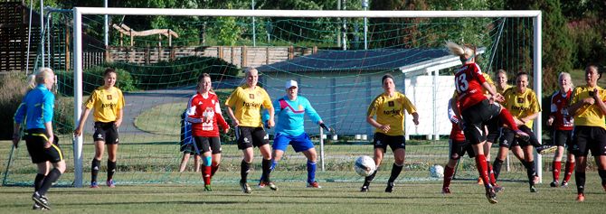 Sen straff gav rättvis poängI inget skede kändes det som om Kimito SF var i någon egentlig knipa hemma mot Turun Weikot i damettan på onsdag kväll. KSF ägde mer boll, pressade för det mesta aktivt och rödtröjorna hade få farliga anfall. Men ändå var det serietrean från Åbo som länge och väl verkade gå mot seger. Detta efter ett riktigt billigt mål i den 28:e minuten. KSF-keepern Tiia Hyypiä gav en slarvig utspark, Emmi Reinikainen hann emellan och placerade in 0–1. TuWe hade sina bästa stunder på båda sidor om halvtidsvilan. Det var ändå KSF som var närmast målskytte, då Anna Törnqvist nickade bollen i ribban på en hörna kort efter paus. Hemmalaget gjorde ny bekantskap med överliggaren tjugo minuter senare när Mira Uronens frispark var en decimeter från att hitta rätt. Men sedan fick Kimitodamerna sin chans. Fem minuter från slutet fälldes Törnqvist innanför straffområdet och domaren förde bollen till elva meter. Uronen slog en säker bredsida från straffpunkten och KSF var ikapp. Matchen slutade även i rättvisa 1–1-siffror. Lähde: Åbo Underrättelser |