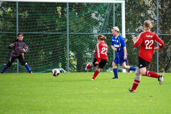 Kotijoukkueen kolmas maali syntyi Emmi Korpelan (40') komeasta vedosta maalin vasempaan yläkulmaan. Emmin maalin syötti Laura Yli-Arvela. Ninni Urpo (43') pääsi vielä ennen puoliaikaa maalintekoon saatuaan vastustajan pelaajasta kimmonneen pallon suoraan jalkaansa ja upottamalla tarkan vedon maalin perukoille.