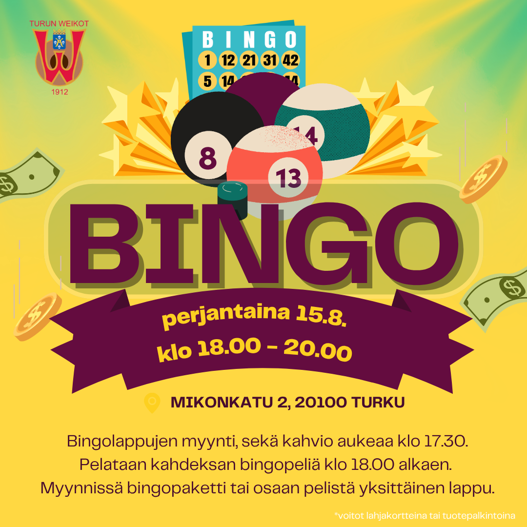 Bingossa pelataan kahdeksan bingopeliä ja ne vaihtelevat kerroittain.